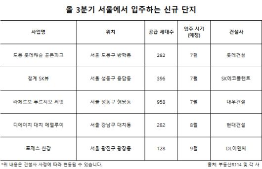 이런 가운데 서울에서는 오는 3분기 새 아파트가 입주를 앞두고 있다.
