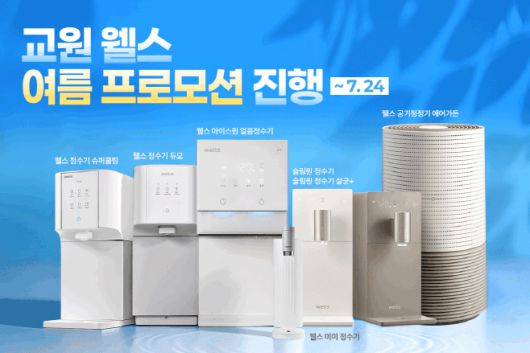 아시아투데이 박진숙 기자 = 교원 웰스(Wells)는 본격적인 여름철을 맞아 무더위를 날릴 수 있는 '여름 위생가전 프로모션'을 오는 24일까지 진행한다고 16일 밝혔다.