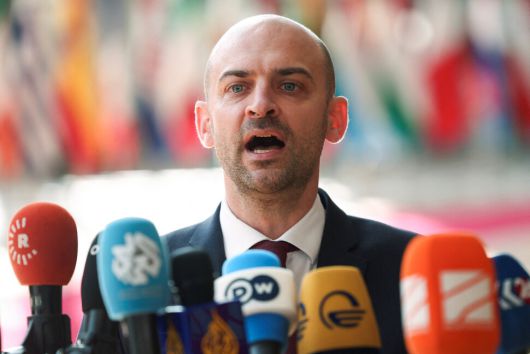 장 노엘 바로 프랑스 외무장관이 15일(현지시각) 벨기에 브뤼셀에서 열리는 유럽연합 외무장관들 회의에 팡서 기자회견을 하고 있다. 브뤼셀/로이터 연합뉴스 |
