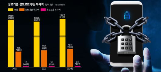 이 기간 이들 기업의 IT 부문 총투자액은 28조7949억원, 33조463억원, 36조1091억원으로 늘었다. 그러나 이 가운데 정보보호 투자 비중은 각각 6.1%, 6%, 6.2%로 제자리걸음을 했다. CEO스코어는 “AI 시대를 맞아 주요 기업들이 AI, 로봇, 빅데이터 등 정보기술 투자는 꾸준히 확대하고 있지만 필수 요건인 정보보호 투자에는 소홀한 것으로 평가된다”고 지적했다.