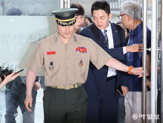 채상병 사망 사건 초동조사 당시 수사외압을 폭로했던 박정훈 해병대 수사단장(대령)이 16일 서울 서초구 순직해병특검 사무실에 참고인 신분으로 출석하고 있다. 송은석 기자 silverstone@donga.com |