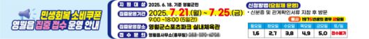 최명서 영월군수는 “이번 민생 회복 소비 쿠폰은 지역경제 회복과 군민 생활 안정을 위한 실질적인 지원책이 될 것”이라며, “모든 군민이 빠짐없이 혜택을 받을 수 있도록 홍보와 접수에 최선을 다하겠다”고 말했다.