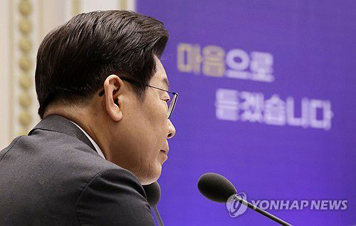 (서울=연합뉴스) 홍해인 기자 = 이재명 대통령이 16일 청와대 영빈관에서 '기억과 위로, 치유의 대화' 사회적 참사 유가족 간담회를 하며 유가족 발언을 듣고 있다. 2025.7.16 [대통령실통신사진기자단]
