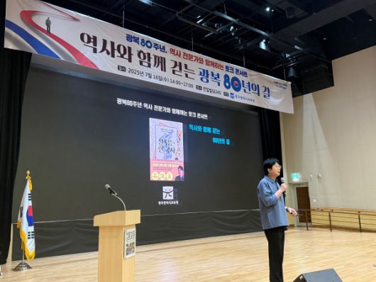 이날 콘서트는 정명섭 작가가 진행을 맡고 박 작가가 '역사와 함께 걷는 광복80주년의 길'을 주제로 강연을 하고, 이어 청중들과 대화를 나누는 순으로 진행됐습니다.