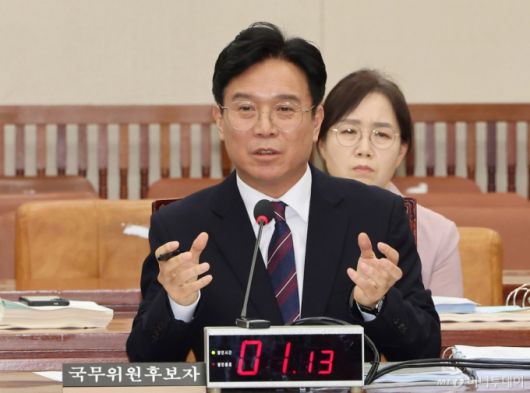 [서울=뉴시스] 김명년 기자 = 김영훈 고용노동부 장관 후보자가 16일 오전 서울 여의도 국회 환경노동위원회에서 열린 인사청문회에서 질의에 답하고 있다. 2025.07.16. |