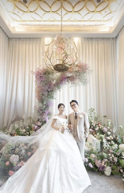 두 사람은 이름이 새겨진 포토월에서 서로를 바라보며 미소짓거나, 식장 대기실에서 포즈를 취하며 마침내 부부가 된 설렘과 행복함을 온 몸으로 표현하고 있다.