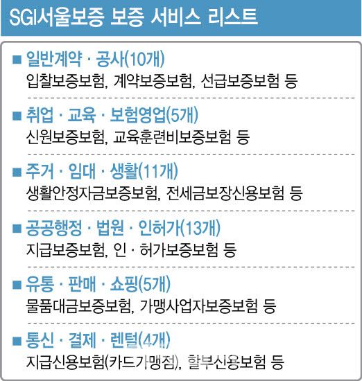 문제는 ‘보증 공백’이다. SGI서울보증은 궁여지책으로 ‘수기’ 조치로 대응하고 있지만 워낙 보증 상품 범위가 넓다 보니 한계가 있다. SGI서울보증의 보증 상품은 40여 개에 달하며 전국에 운영 중인 지점도 72개다. 대표적으로 보험 설계사가 지급보증 보험에 가입하지 못해 월급과 마찬가지인 수수료를 일시에 받지 못하고 나눠 받아야 하는 상황이 벌어지고 있다. 보험업계 관계자는 “보험 설계사는 수수료를 분급으로 수령하면 연봉이 감소한다”며 “일부 법인보험대리점(GA)이 신입 설계사 채용을 미뤄 영업에도 타격이 예상된다”고 했다.