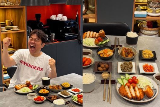 사진에는 정갈하게 차려진 한상 가득한 집밥 메뉴와 이를 앞에 두고 환하게 웃으며 주먹을 불끈 쥔 정종철의 모습이 담겼다.