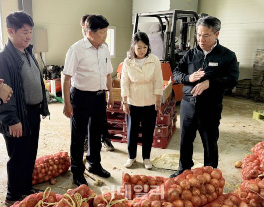 [이데일리 김태형 기자] 박서홍(오른쪽) 농협경제지주 농업경제대표이사가 15일 경기 고양시 신도농협(조합장 홍성규) 관내 군납 농가를 방문해 부대 공급 품목의 작황과 출하동향을 점검하고 있다.