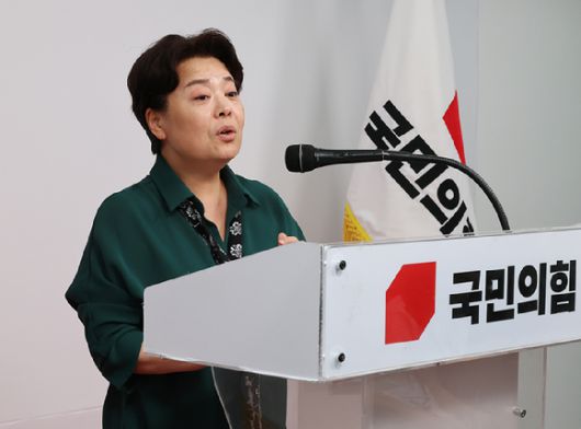 국민의힘 윤희숙 혁신위원장이 10일 서울 여의도 당사에서 제1차 혁신위원회 회의 결과를 브리핑을 하고 있다. [사진=연합뉴스] |