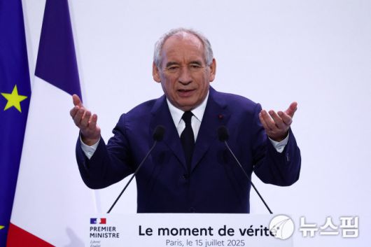 프랑수아 바이루 프랑스 총리가 15일(현지시간) 기자회견을 열고 2026년도 예산안 방향을 설명하고 있다. [사진=로이터 뉴스핌] |