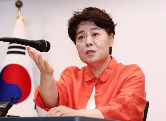 윤희숙 국민의힘 혁신위원장이 16일 서울 여의도 중앙당사에서 현안 관련 기자간담회를 하고 있다. 2025.7.16 뉴스1 |