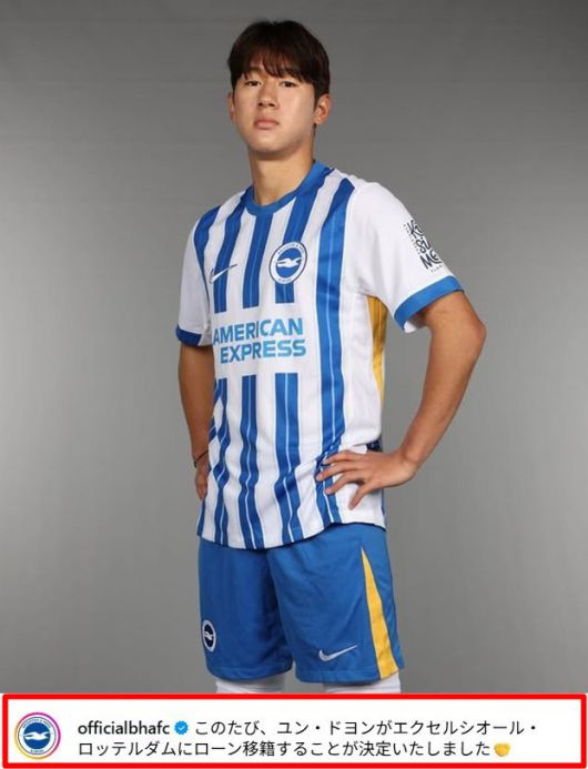 문제가 된 건 브라이턴의 구단 공식 인스타그램 계정이다. 브라이턴은 구단 인스타그램 계정을 통해 윤도영의 임대 소식을 전할 때, 다름 아닌 일본어로 작성했다.