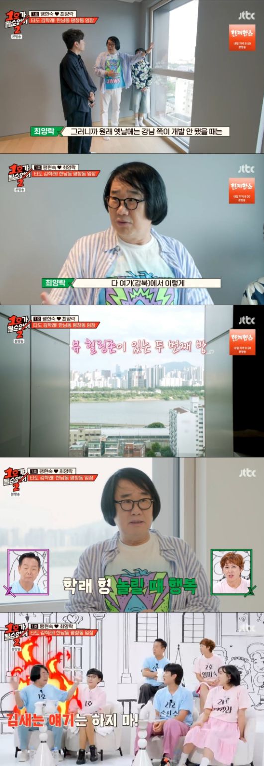 16일 방송된 JTBC '1호가 될 순 없어2'(이하 '1호가2')에서는 한남동과 평창동으로 임장을 떠난 최양락과 팽현숙의 모습이 전파를 탔다.
