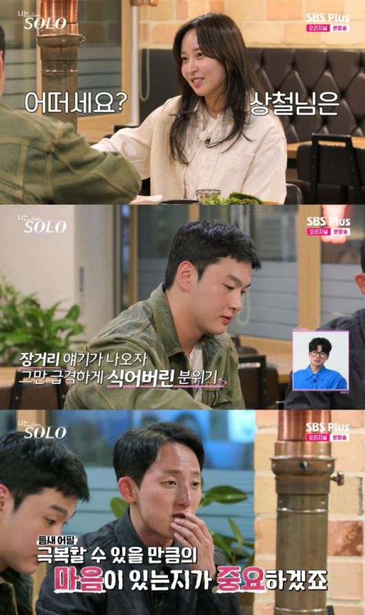 장거리 연애의 언급에 상철은 다시 표정이 어두워지고 말이 없어졌다.