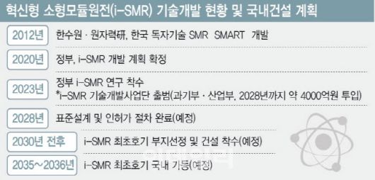 우리나라도 한국수력원자력(한수원)을 중심으로 오랜 기간 연구한 끝에 독자 기술을 개발해 왔다. 지난 2020년부터는 정부 차원에서 2028년 개발 완료를 목표로 약 4000억원을 투입하는 혁신형 SMR(i-SMR) 개발에 착수했다.