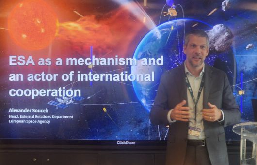 알렉산더 수섹 유럽우주국(ESA) 국제협력담당관이 발표를 하고 있다.(사진=이데일리 강민구 기자) |