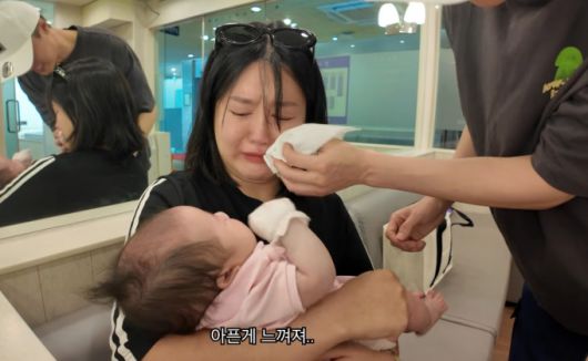 지난 15일 유튜브 채널 '아뽀TV'에는 '약먹고 주사맞아도 울지 않는 이엘이를 대신해서 울어주는 엄마'라는 제목의 영상이 올라왔다.