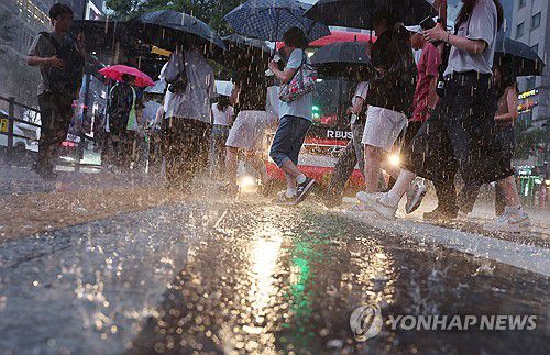 예상 강수량은 서울·인천·경기 50∼120㎜(많은 곳 경기 남부 180㎜ 이상), 서해5도 5∼40㎜, 강원 내륙·산지 50∼100㎜(많은 곳 강원 중·남부 내륙 150㎜ 이상), 강원 동해안 5∼40㎜다.
