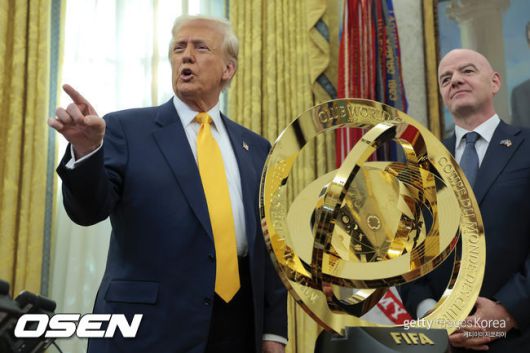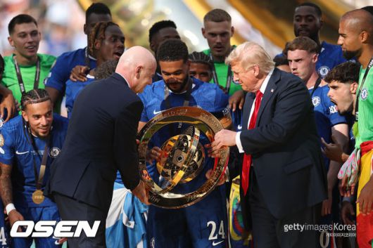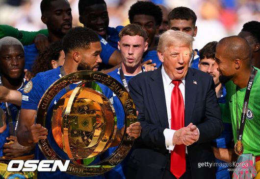 트럼프 대통령은 'DAZN'과 인터뷰에서 "트로피는 언제 가져갈 거냐고 물었다. 그랬더니 '아예 가져가지 않을 거다. 영원히 오벌 오피스에 보관할 수 있다. 새 트로피를 만들 거다'라고 하더라. 실제로 첼시를 위해 새로 하나 만들었다. 꽤 신났지만, 지금 원본은 오벌 오피스에 있다"라고 말했다.