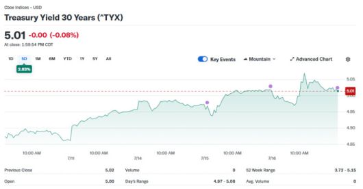미 국채 30년물 금리 차트, 자료=야후 파이낸스, 2025.07.17 koinwon@newspim.com |