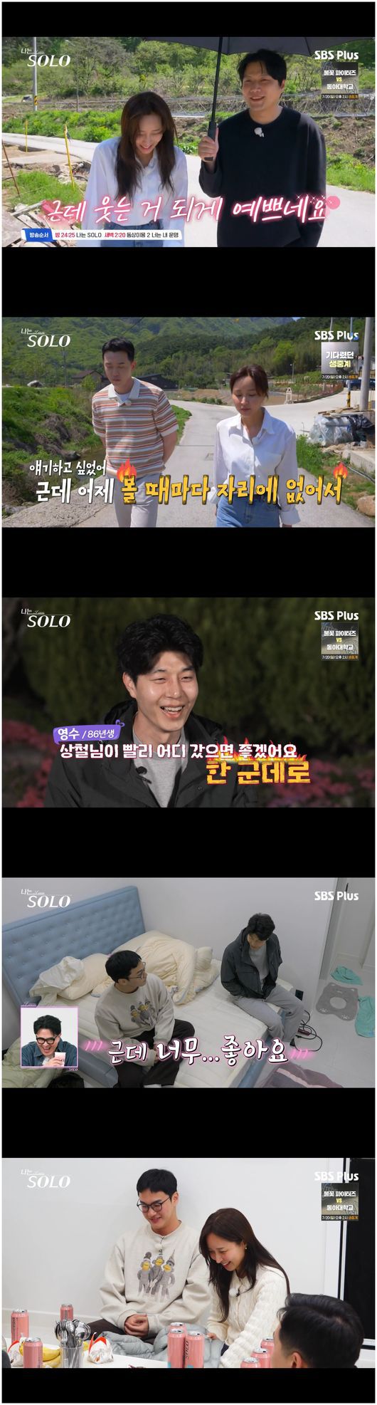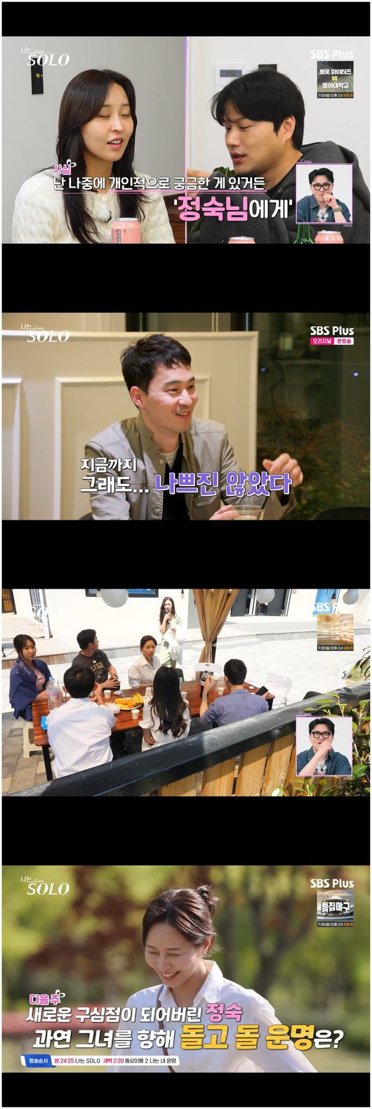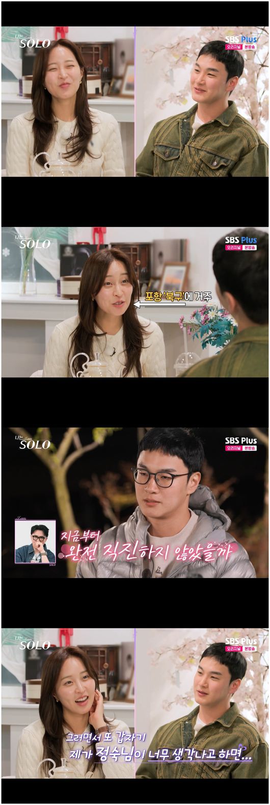 16일 방영된 SBS 예능 ‘나는 솔로’(이하 ‘나는솔로’)에서는 자기소개 후 남성 선택의 첫 데이트가 이뤄졌다. 인기녀로 단박에 눈도장을 찍었던 정숙은 여성 출연자 중 유일하게 포항에 거주하고 있다는 사실 때문에 영호와 영수의 포기 선언이 이뤄졌다. 상철 또한 고민을 했으나, 그는 정숙을 선택했다.