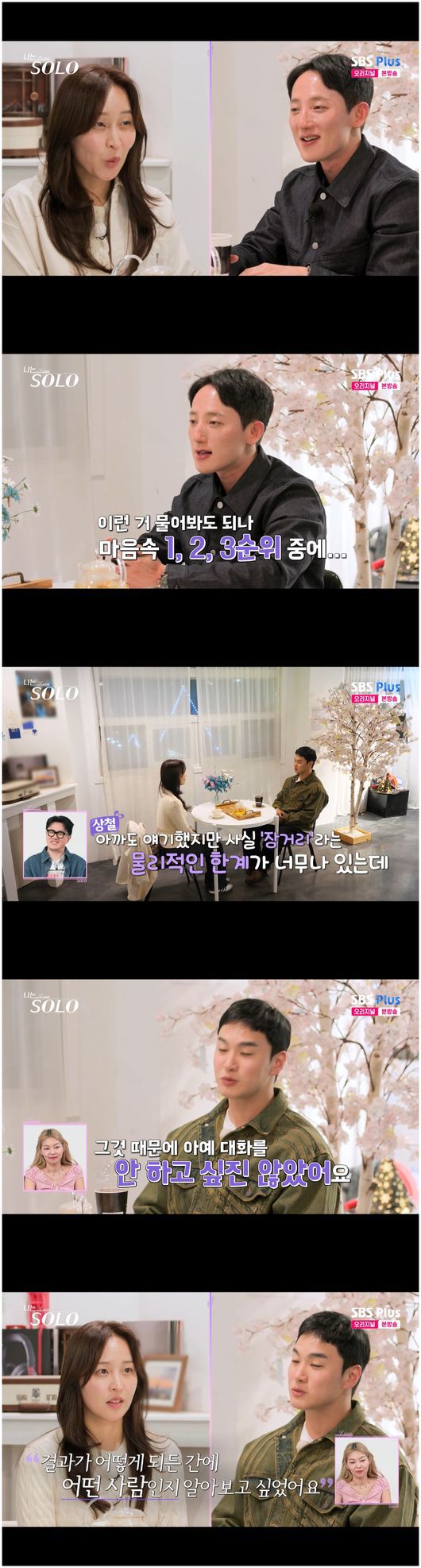 그러나 광수는 오해했다. 광수는 “원래 있던 분이 장거리로 나가게 되면서 그때부터 저를 생각한다고 하시는데, 내가 마음에 없는 것 같더라. 저에게 다른 분들도 알아보라고 하셔서, 그러면 에둘러 거절 표현하신 것 같다”라면서 “상철에 대한 마음은 있으신 건 같고, 저는 3순위 내에 있진 않은 것 같아서 여기서 정리를 하고 다른 분들에게 마음을 써 보는 게 좋지 않을까 싶다”라고 말했다.