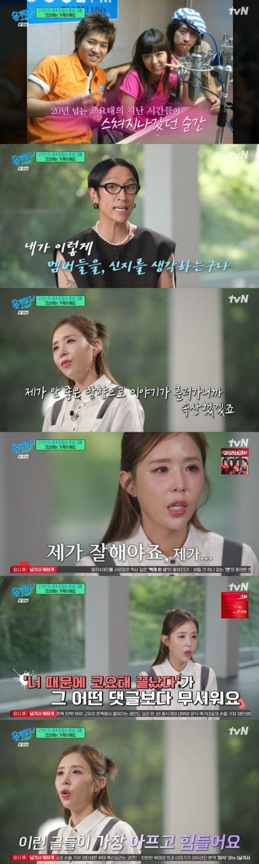 신지는 "저는 혹여라도 팀에 피해가 갈까 봐 일부러 다 보고 있다. 댓글들이나 반응들을. '너 때문에 코요태 끝났다' 이런 댓글이 그 어떤 댓글보다 무섭다. '너 때문에 코요태 망했다, 너 때문에 코요태 끝났다' 이런 글들이 가장 아프고 힘들다. 그 어떤 말보다"라며 고백했다.