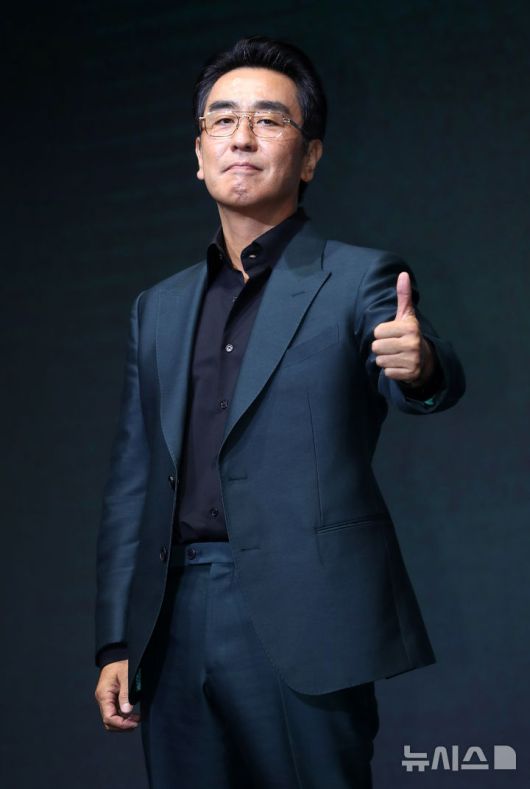 [서울=뉴시스] 김혜진 기자 = 배우 류승룡이 8일 오전 서울 영등포구 콘래드 서울에서 열린 디즈니+의 오리지널 시리즈 '파인: 촌뜨기들' 제작발표회에서 포즈를 취하고 있다. 2025.07.08. jini@newsis.com |