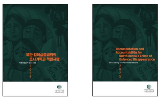 [서울=뉴스핌] 대북 인권단체인 전환기정의워킹그룹(TJWG)은 17일 김정은 정권의 인권탄압과 폭압적 통치실태를 담은 『북한 강제실종범죄 조사기록과 책임규명: 이행 점검과 권고사항』 보고서를 한국어와 영어로 배포했다. 사진은 보고서 표지. [사진=TJWG] 2025.07.17 |