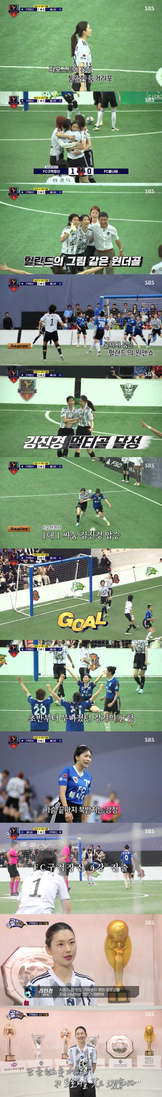 [스타데일리뉴스=황규준 기자] 16일 방송된 SBS '골 때리는 그녀들'에서 FC구척장신이 김진경의 멀티골과 골키퍼 허경희의 활약으로 FC불나비를 3대 1로 꺾고 G리그 4강에 진출했다.