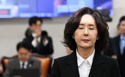 이진숙 부총리 겸 교육부 장관 후보자가 16일 국회 교육위원회에서 열린 인사청문회에서 김영호 위원장에게 선서문을 제출한 후 눈을 질끈 감은 채 자리로 이동하고 있다. 여권에서도 임명 불가 여론이 커지는 가운데 이 후보자는 이날 자녀 불법 조기 유학 논란 등과 관련해 고개를 숙였다. 홍윤기 기자 |