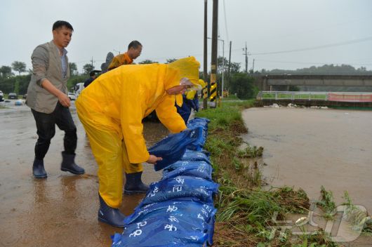 (홍성=뉴스1) 이동원 기자 = 이용록 홍성군수가 17일, 갈산교 범람으로 침수 피해를 입은 갈산전통시장 일원에서 주민·갈산면 직원들과 함께 모래주머니를 활용한 긴급 복구 작업에 나섰다. (홍성군 제공. 재판매 및 DB금지)2025.7.17/뉴스1newskija@news1.krCopyright ⓒ 뉴스1. All rights reserved. 무단 전재 및 재배포, AI학습 이용 금지.