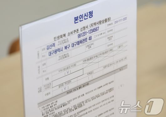 행정안전부는 한순기 지방재정경제실장이 16일 민생회복 소비쿠폰 1차 지급을 앞두고 대구 산격4동 행정복지센터를 방문해 소비쿠폰 관련 행정복지센터 준비상황을 점검했다고 밝혔다. 사진은 민생회복 소비쿠폰 신청서. (행정안전부 제공. 재판매 및 DB 금지) 2025.7.16/뉴스1
