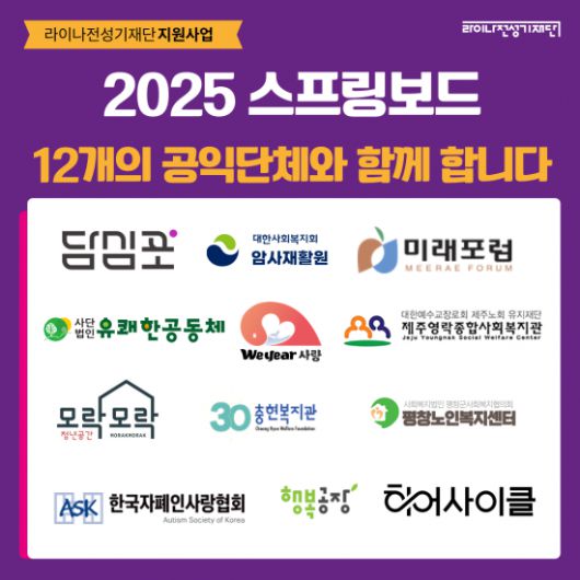 라이나전성기재단은 지난 4월 '2025년 스프링보드 지원사업' 공고를 통해 지원대상을 모집했다. 스프링보드는 '50+세대'와 돌봄 종사자와 소외계층의 사회적 고립을 해결하고 삶의 질을 향상하는 프로그램과 사업 아이디어를 보유한 단체를 모집하고 자금을 지원하는 사업이다.