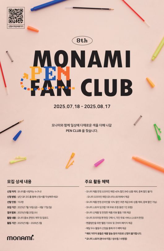 모나미 관계자는 “모나미 펜클럽은 2018년부터 8년간 모나미의 곁을 지켜온 오랜 파트너다. 앞으로도 펜클럽과 함께, 모나미만이 선사할 수 있는 독창적인 경험을 함께 만들어갈 예정이다”라고 밝혔다.