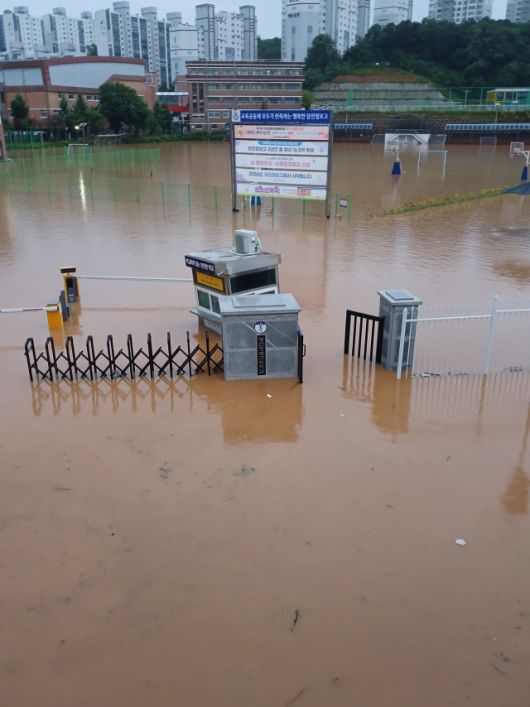 큰 비가 집중된 충청권을 중심으로 하천 곳곳엔 홍수 경보가 내려지고 도로가 통제됐다. 충남 서산시 운산면 운산교차로 지하차도에서는 침수가 발생해 차량 2대가 물에 잠겨 고립됐다. 미처 대피하지 못한 차량 운전자는 차 위에 올라가 구조를 기다리기도 했다.