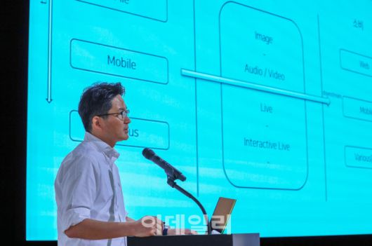 김성호 네이버 이머시브 미디어 플랫폼 리더가 지난 16일 네이버 그린팩토리에서 열린 ‘테크포럼’에서 네이버의 영상 미디어 기술 고도화 현황을 소개하고 있다.(사진=네이버) |