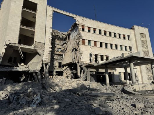 시리아 다마스쿠스의 국방부 청사가 16일(현지시간) 이스라엘의 폭격으로 파손된 모습.EPA연합뉴스