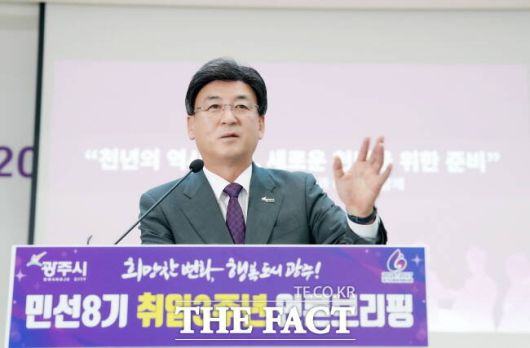 방세환 광주시장이 지난 9일 취임 3주년을 기념해 기자회견을 열고 있다./광주시 |