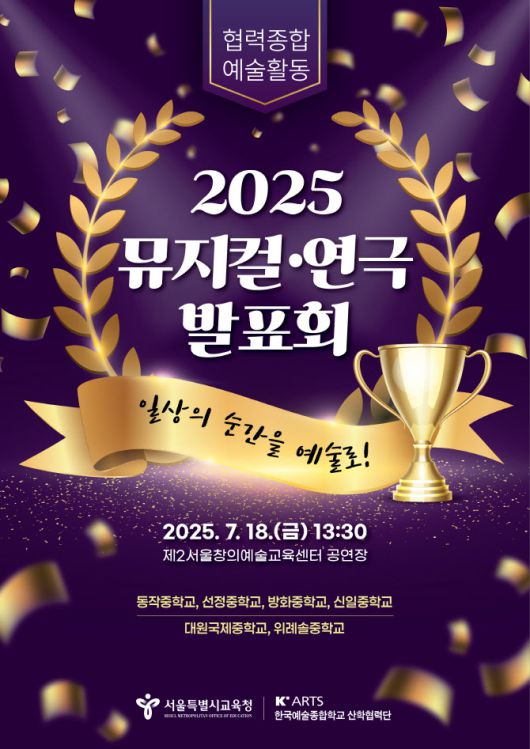 [이데일리 김응열 기자] 서울시교육청은 오는 18일 서울 성동구 제2서울창의예술교육센터에서 ‘2025 협력종합예술활동 뮤지컬·연극 발표회’를 개최한다.