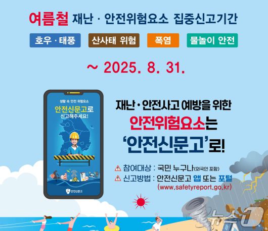 이번 '여름철 안전신문고 집중신고제'는 8월까지 운영되며, 기후 상황에 따라 연장될 수 있다.