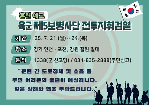훈련 관련 불편 사항은 5사단(☎ 031-835-2888)으로 문의하면 된다.