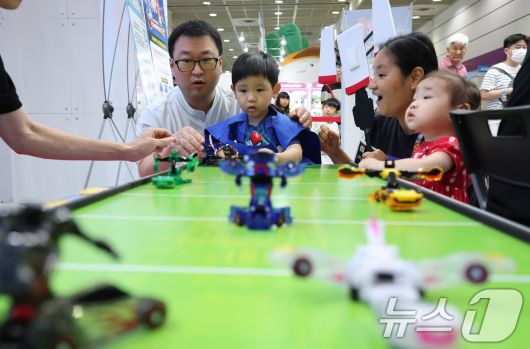 (서울=뉴스1) 박지혜 기자 = 17일 서울 강남구 코엑스에서 열린 캐릭터 라이선싱 페어 2025를 찾은 어린이가 캐릭터 체험을 하고 있다. 올해로 24회를 맞는 ‘캐릭터 라이선싱 페어 2025’는 문화체육관광부가 주최하고 한국콘텐츠진흥원과 코엑스가 공동 주관하는 콘텐츠 지식재산(IP) 라이선싱 전시회다. 2025.7.17/뉴스1