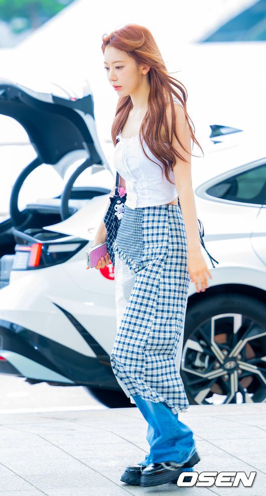 르세라핌 사쿠라가 출국길에 포즈를 취하고 있다. 2025.07.17 / rumi@osen.co.kr