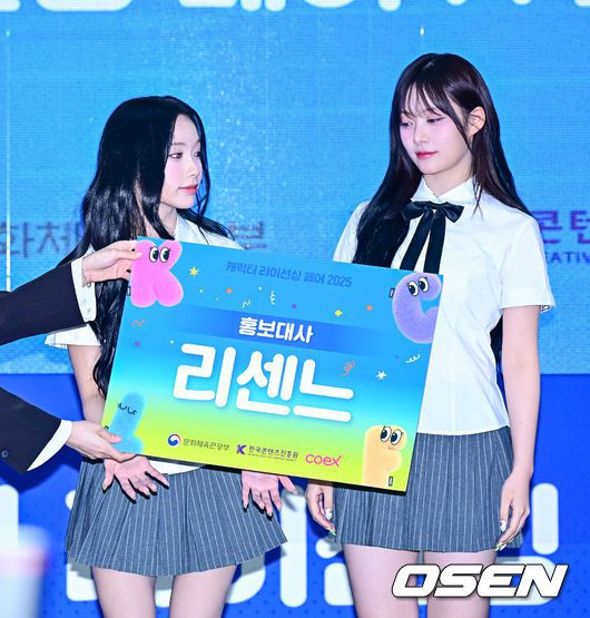[OSEN=지형준 기자] 17일 오전 서울 강남구 삼성동 코엑스에서 ‘캐릭터 라이선싱 페어 2025’ 개막식이 열렸다. 이날 걸그룹 리센느가 홍보대사 위촉식을 가졌다. 리센느 원이, 리 브가 위촉식을 갖고 있다. 2025.07.17 / jpnews@osen.co.kr