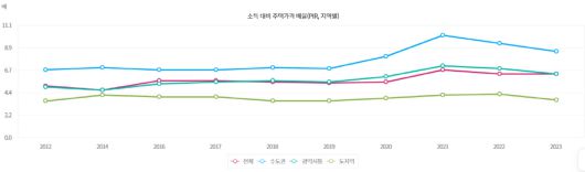'부모 찬스' 없이 주택 구매가 어려운 환경 또한 캥거루족을 늘린다. 국토교통부 주거실태조사에 따르면 지난 2023년 기준 수도권의 PIR(소득 대비 주택가격 비율)은 8.5다. 중위 소득 가구가 8.5년간 한 푼도 쓰지 않아야 중위 가격 주택을 구매할 수 있는 셈이다. 소득을 청년 개인으로 한정하면 주택 구매에 걸리는 기간은 수십년까지 늘어난다. 자녀 세대는 비용을 들여가며 독립할 이유를 찾기 어려운 것.