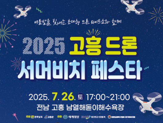 고흥군은 오는 26일부터 27일까지 이틀간 영남면 남열해돋이해수욕장 일원에서 '2025 고흥 드론 서머비치 페스타'를 개최한다고 17일 밝혔다.