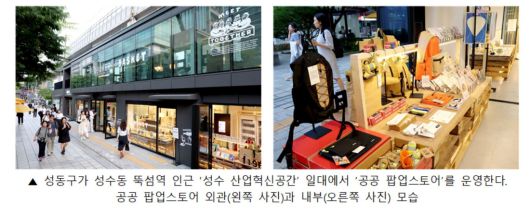 서울 성동구가 뚝섬역 인근 성수 산업혁신공간 일대에서 8월 25일까지 ‘공공 팝업스토어’를 운영한다고 17일 밝혔다.