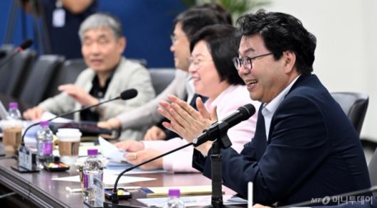 [서울=뉴시스] 추상철 기자 = 이한주 국정기획위원회 위원장이 16일 오전 서울 종로구 국정기획위원회에서 열린 '미디어혁신범국민협의체(가칭) 추진을 위한 의견수렴 간담회'에서 참석자와 담소를 나누고 있다. (공동취재) 2025.07.16. photo@newsis.com /사진=추상철 |